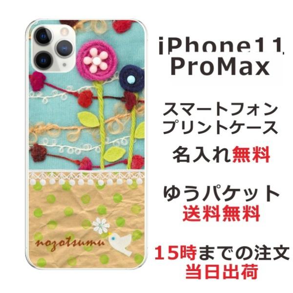 iPhone11 ProMax ケース アイフォン11プロマックス カバー らふら 名入れ キルトフラワーブルー