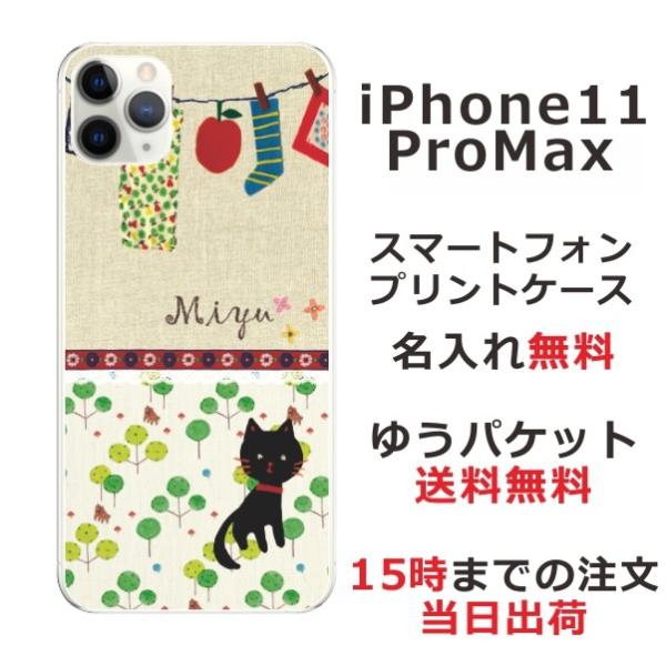 iPhone11 ProMax ケース アイフォン11プロマックス カバー らふら 名入れ 黒猫 洗濯物