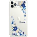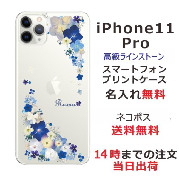 iPhone11 Pro ケース アイフォン11プロ カバー ラインストーン かわいい フラワー 花柄 らふら 名入れ 押し花風 ビビットブルーフラワー