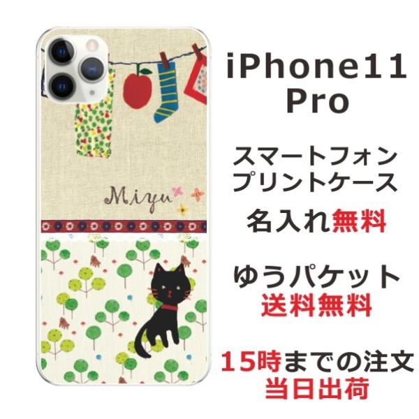 iPhone11 Pro ケース アイフォン11プロ カバー らふら 名入れ 黒猫 洗濯物