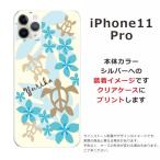 iPhone11 Pro ケース アイフォン11プロ カバー らふら 名入れ ハワイアン ブルー ホヌ