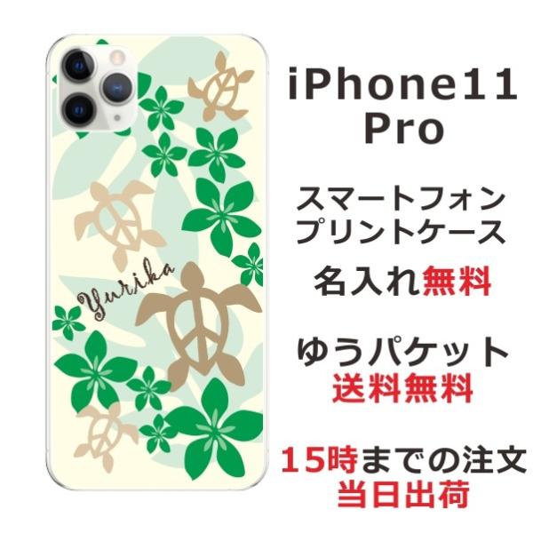 iPhone11 Pro ケース アイフォン11プロ カバー らふら 名入れ ハワイアン グリーン ホヌ