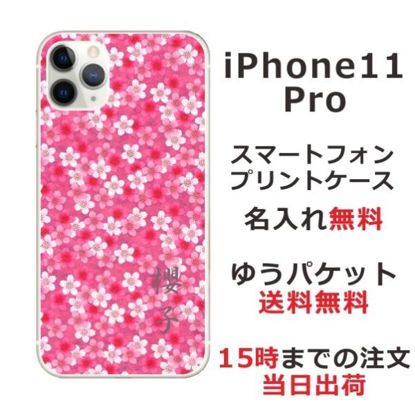 iPhone11 Pro ケース アイフォン11プロ カバー らふら 名入れ 和柄 桜ピンク