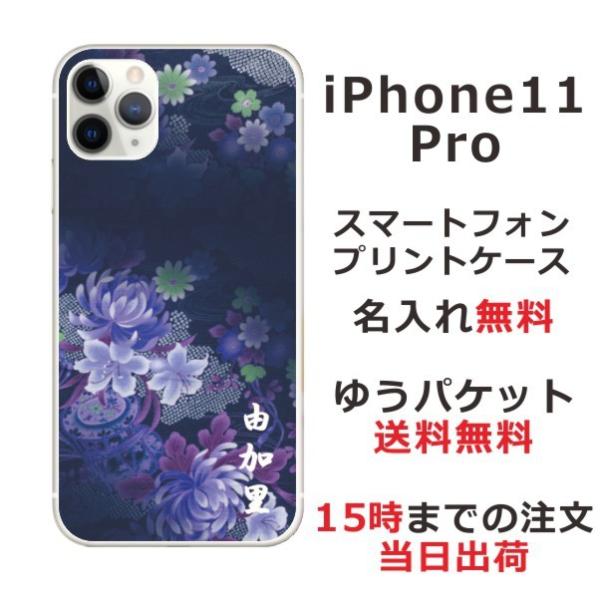 iPhone11 Pro ケース アイフォン11プロ カバー らふら 名入れ 和柄 和花青紫グラデ