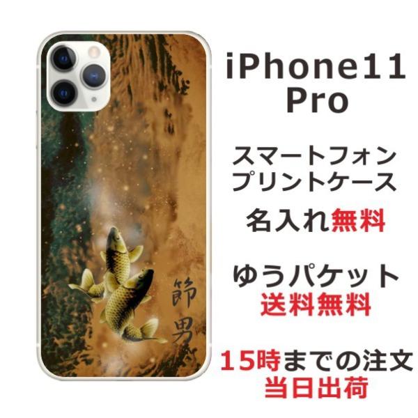 iPhone11 Pro ケース アイフォン11プロ カバー らふら 名入れ 和柄 黄金双鯉