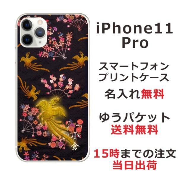 iPhone11 Pro ケース アイフォン11プロ カバー らふら 名入れ 和柄 鳳凰黒