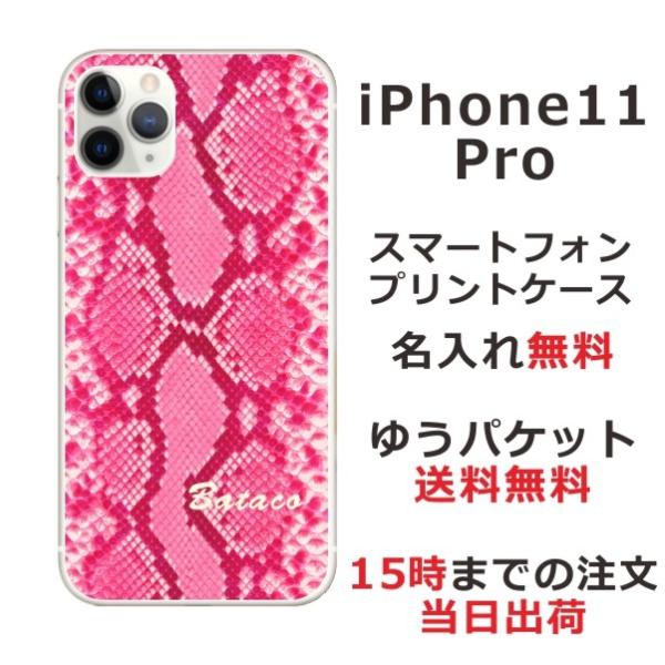 iPhone11 Pro ケース アイフォン11プロ カバー らふら 名入れ へび柄 ピンク