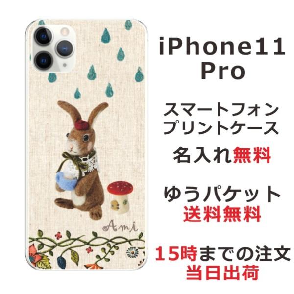 iPhone11 Pro ケース アイフォン11プロ カバー らふら 名入れ 雨降りうさぎ