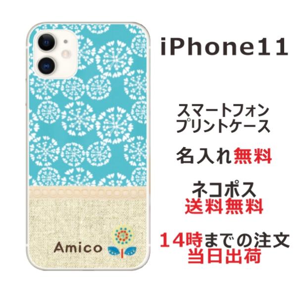 iPhone11 ケース アイフォン11 カバー らふら 名入れ 北欧デザイン フラワー ブルー
