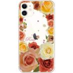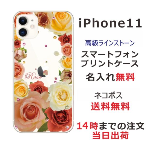 iPhone11 ケース アイフォン11 カバー ラインストーン かわいい フラワー 花柄 らふら 名入れ 押し花風 バラ
