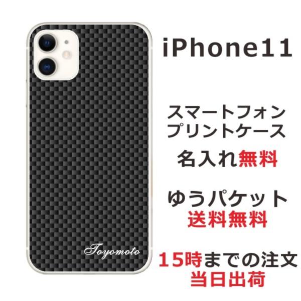 iPhone11 ケース アイフォン11 カバー らふら 名入れ カーボン ブラック