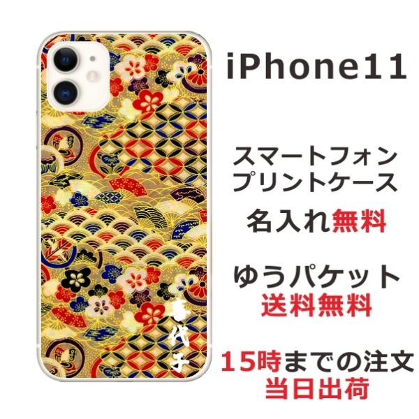 iPhone11 ケース アイフォン11 カバー らふら 名入れ 和柄 千代紙ゴールド