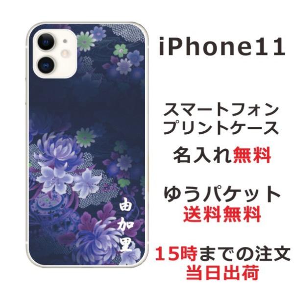 iPhone11 ケース アイフォン11 カバー らふら 名入れ 和柄 和花青紫グラデ