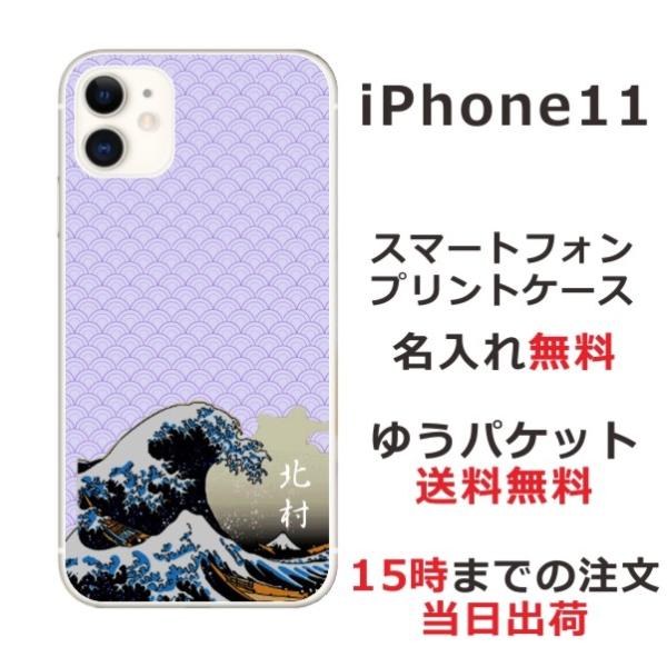 iPhone11 ケース アイフォン11 カバー らふら 名入れ 和柄 浮世絵波