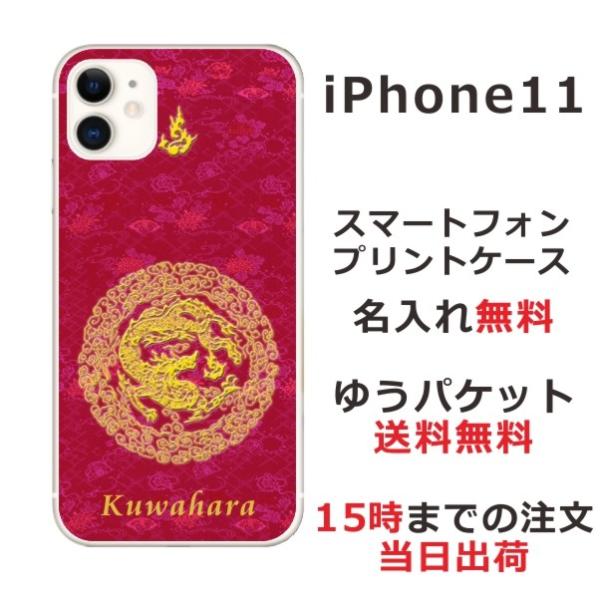iPhone11 ケース アイフォン11 カバー らふら 名入れ 和柄 円龍赤