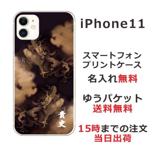 iPhone11 ケース アイフォン11 カバー らふら 名入れ 和柄 昇龍セピア
