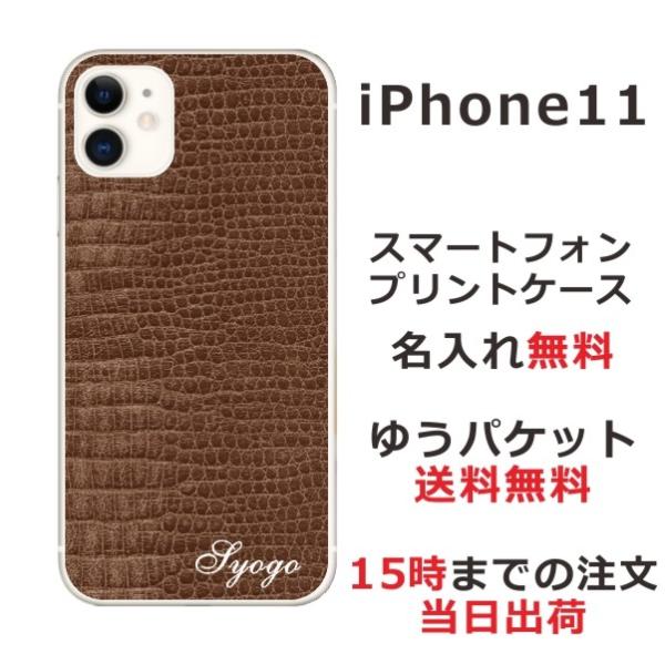 iPhone11 ケース アイフォン11 カバー らふら 名入れ クロコダイル ブラウン