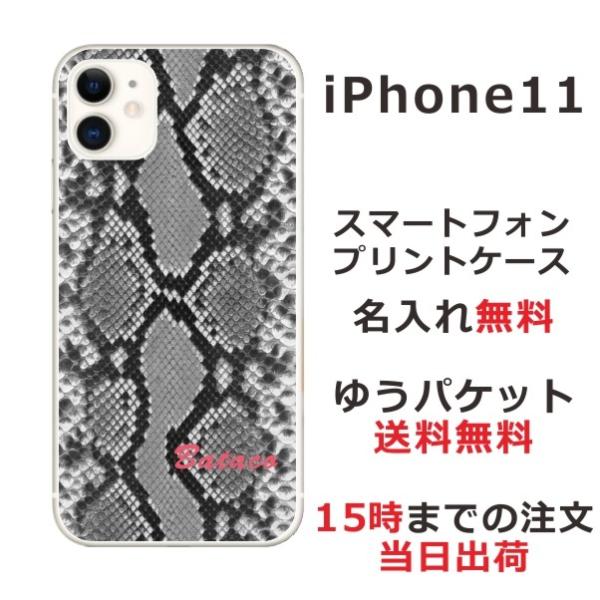 iPhone11 ケース アイフォン11 カバー らふら 名入れ へび柄 ブラック