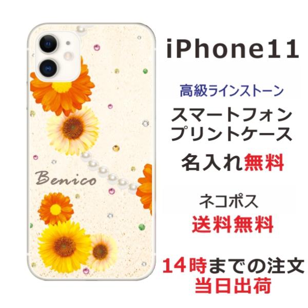 iPhone11 ケース アイフォン11 カバー ラインストーン かわいい らふら 名入れ パールフラワー