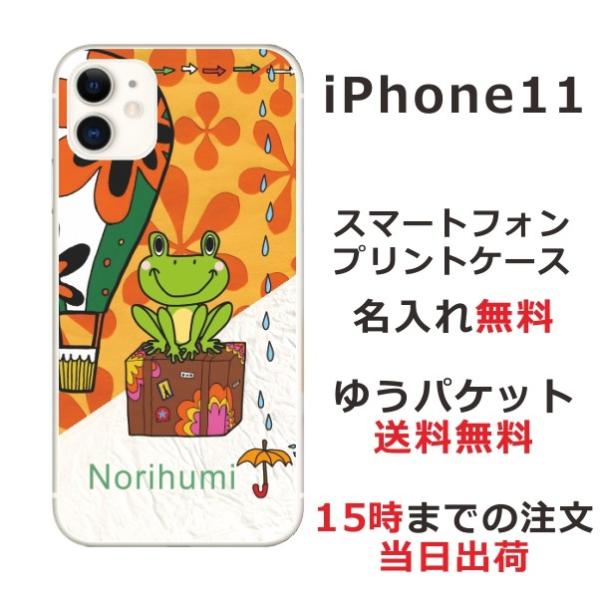 iPhone11 ケース アイフォン11 カバー らふら 名入れ カエル 気球