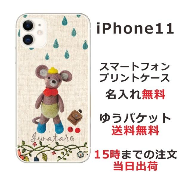 iPhone11 ケース アイフォン11 カバー らふら 名入れ 雨降りベア