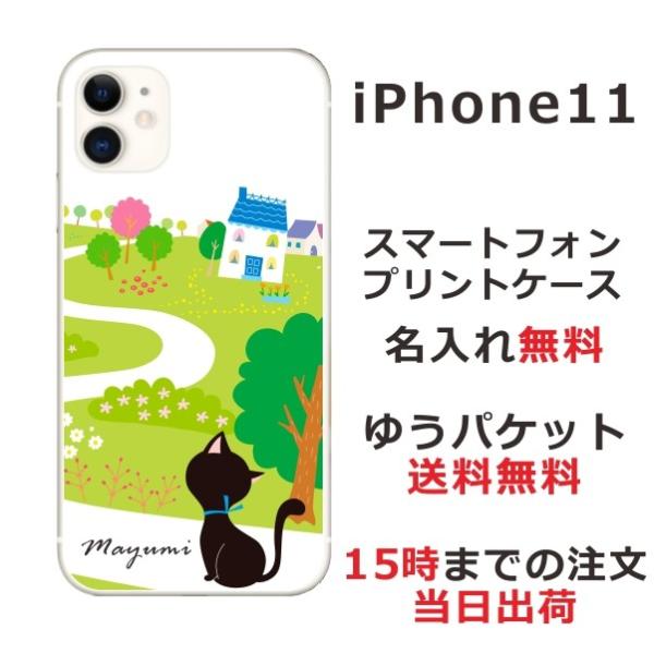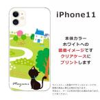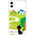 iPhone11 ケース アイフォン11 カバー らふら 名入れ 黒猫 お散歩