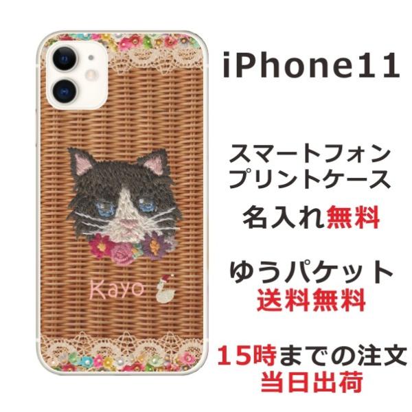 iPhone11 ケース アイフォン11 カバー らふら 名入れ 籐猫黒