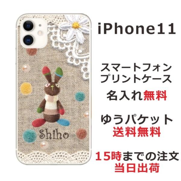 iPhone11 ケース アイフォン11 カバー らふら 名入れ コットンレース風 うさぎ