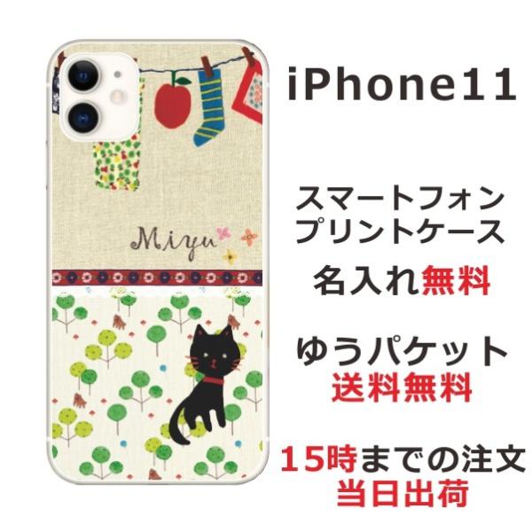 iPhone11 ケース アイフォン11 カバー らふら 名入れ 黒猫 洗濯物