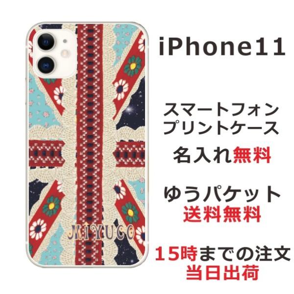 iPhone11 ケース アイフォン11 カバー らふら 名入れ ユニオンジャック レース