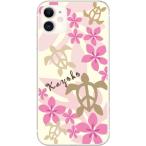 iPhone11 ケース アイフォン11 カバー らふら 名入れ ハワイアン ピンク ホヌ
