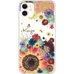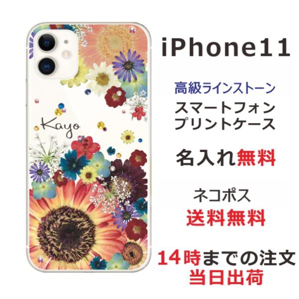 iPhone11 ケース アイフォン11 カバー ラインストーン かわいい フラワー 花柄 らふら 名入れ 押し花風 フラワーアレンジカラフル