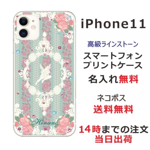 iPhone11 ケース アイフォン11 カバー ラインストーン かわいい らふら 名入れ フェアリーミント