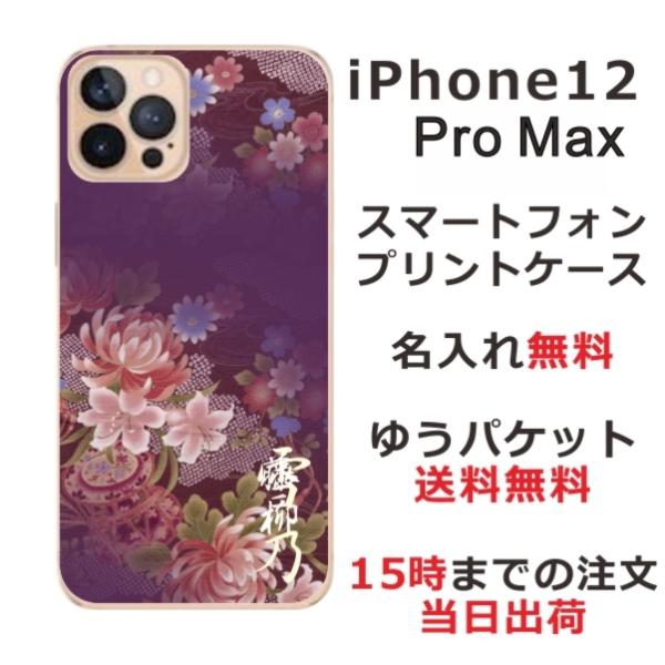iPhone12 Pro Max ケース アイフォン12プロマックス カバー らふら 名入れ 和柄 和花紫桃グラデ