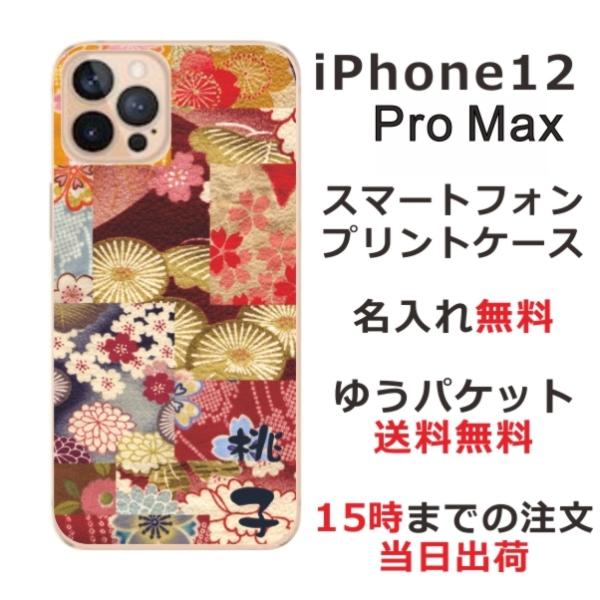 iPhone12 Pro Max ケース アイフォン12プロマックス カバー らふら 名入れ 和柄 着物パッチワークピンク