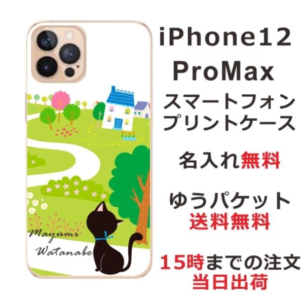 iPhone12 Pro Max ケース アイフォン12プロマックス カバー らふら 名入れ 黒猫 お散歩