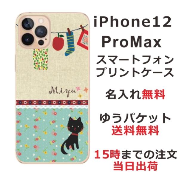 iPhone12 Pro Max ケース アイフォン12プロマックス カバー らふら 名入れ 黒猫 洗濯物