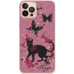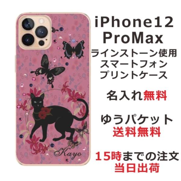 iPhone12 Pro Max ケース アイフォン12プロマックス カバー ラインストーン かわいい らふら 名入れ 黒猫 蝶