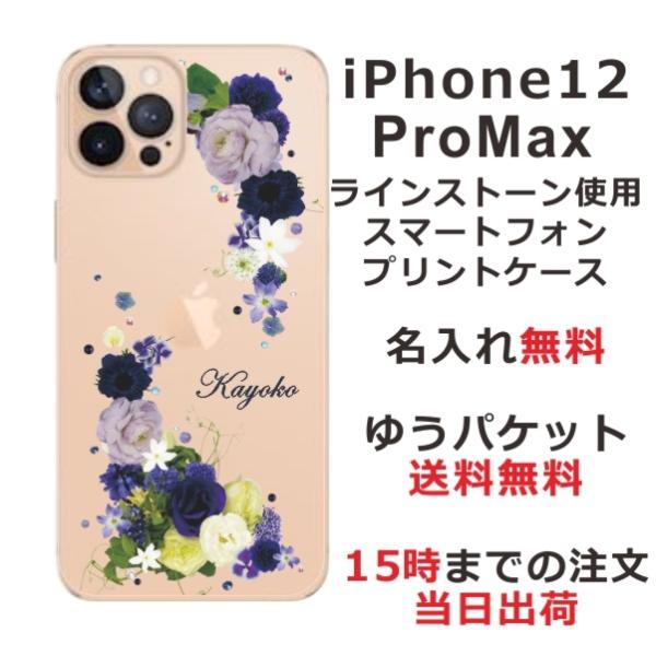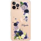iPhone12 Pro Max ケース アイフォン12プロマックス カバー ラインストーン かわいい らふら フラワー 花柄 押し花風 ブルーアレンジ