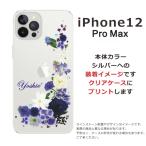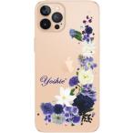 iPhone12 Pro Max ケース アイフォン12プロマックス カバー ラインストーン かわいい らふら フラワー 花柄 押し花風 ブルーアレンジ