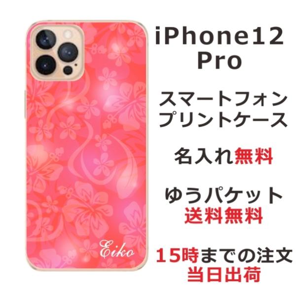 iPhone12 Pro ケース アイフォン12プロ カバー らふら 名入れ ハイビスカスピンク