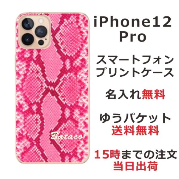 iPhone12 Pro ケース アイフォン12プロ カバー らふら 名入れ へび柄 ピンク