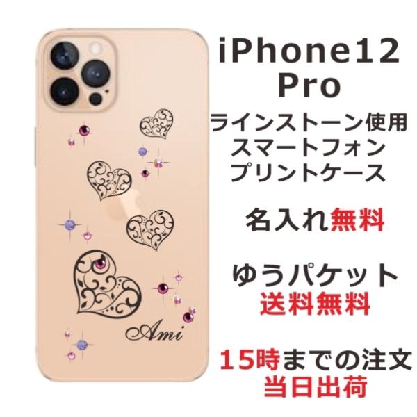 iPhone12 Pro ケース アイフォン12プロ カバー ラインストーン かわいい らふら 名入れ グラデハート