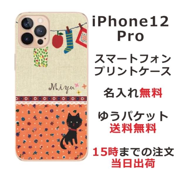 iPhone12 Pro ケース アイフォン12プロ カバー らふら 名入れ 黒猫 洗濯物