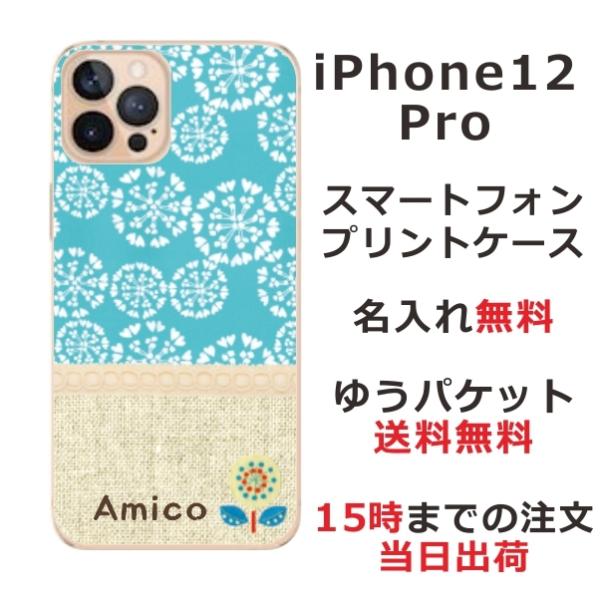 iPhone12 Pro ケース アイフォン12プロ カバー らふら 名入れ 北欧デザイン フラワー ブルー