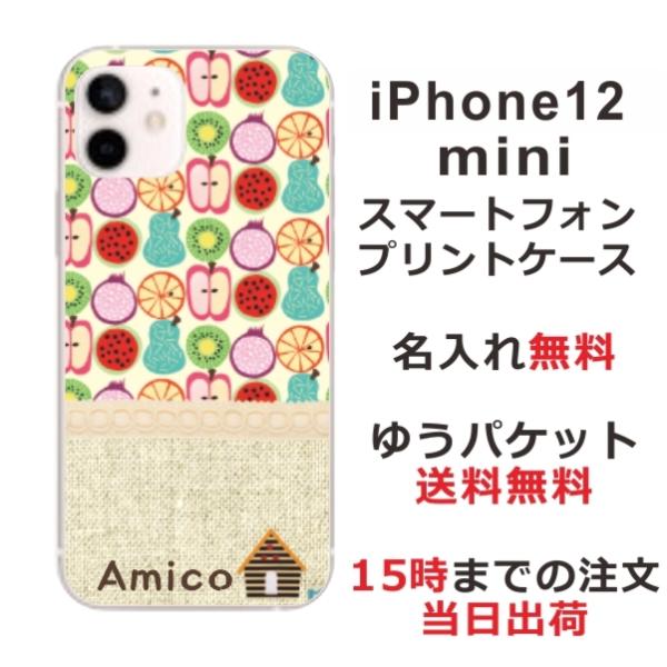 iPhone12 Mini ケース アイフォン12ミニ カバー らふら 名入れ 北欧デザイン フルーツ カラフル