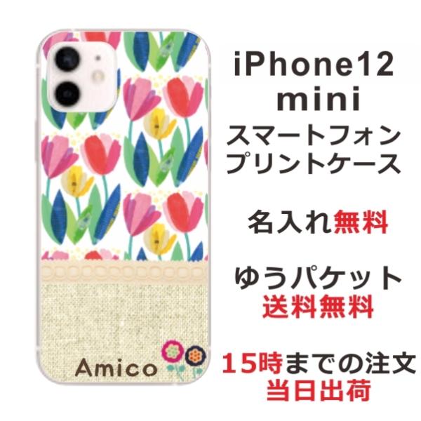 iPhone12 Mini ケース アイフォン12ミニ カバー らふら 名入れ 北欧デザイン チューリップ