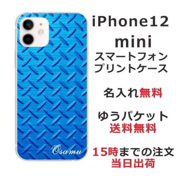 iPhone12 Mini ケース アイフォン12ミニ カバー らふら 名入れ メタル ブルー
