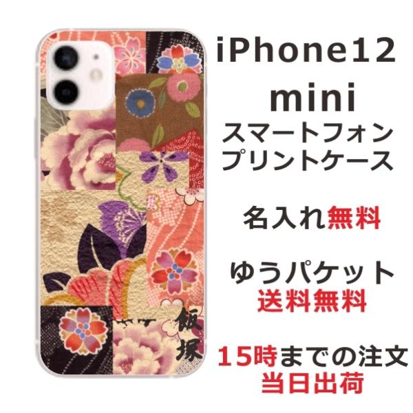 iPhone12 Mini ケース アイフォン12ミニ カバー らふら 名入れ 和柄 和花パッチワーク