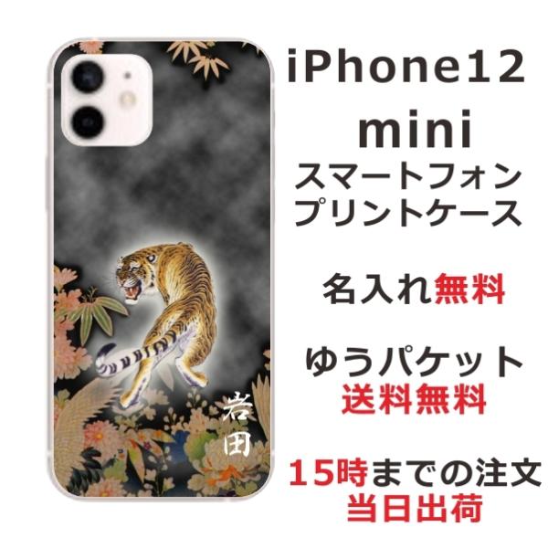 iPhone12 Mini ケース アイフォン12ミニ カバー らふら 名入れ 和柄 猛虎